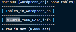 저 RECOVER_YOUR_DATA_info라는 테이블은 보안이 취약한 DB를 스캔해 기존 데이터를 싹 지워버리고(DROP), “복구하고 싶으면 비트코인을 보내라”며 남겨두는 전형적인 협박 편지였다. 워드프레스가 자꾸 가입 페이지(wp-signup.php)로 리디렉션 시켰던 이유도 설정 문제가 아니라, 연결할 데이터베이스 자체가 텅 비어버렸기 때문이었다.